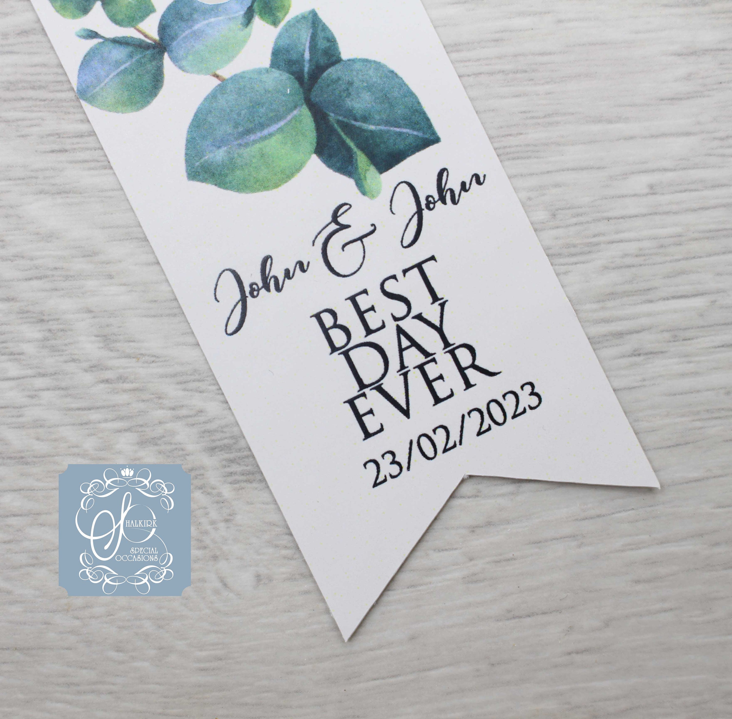 Personalised favour tags, wedding, birthday favor gift. bride and groom, Eucalyptus wreath