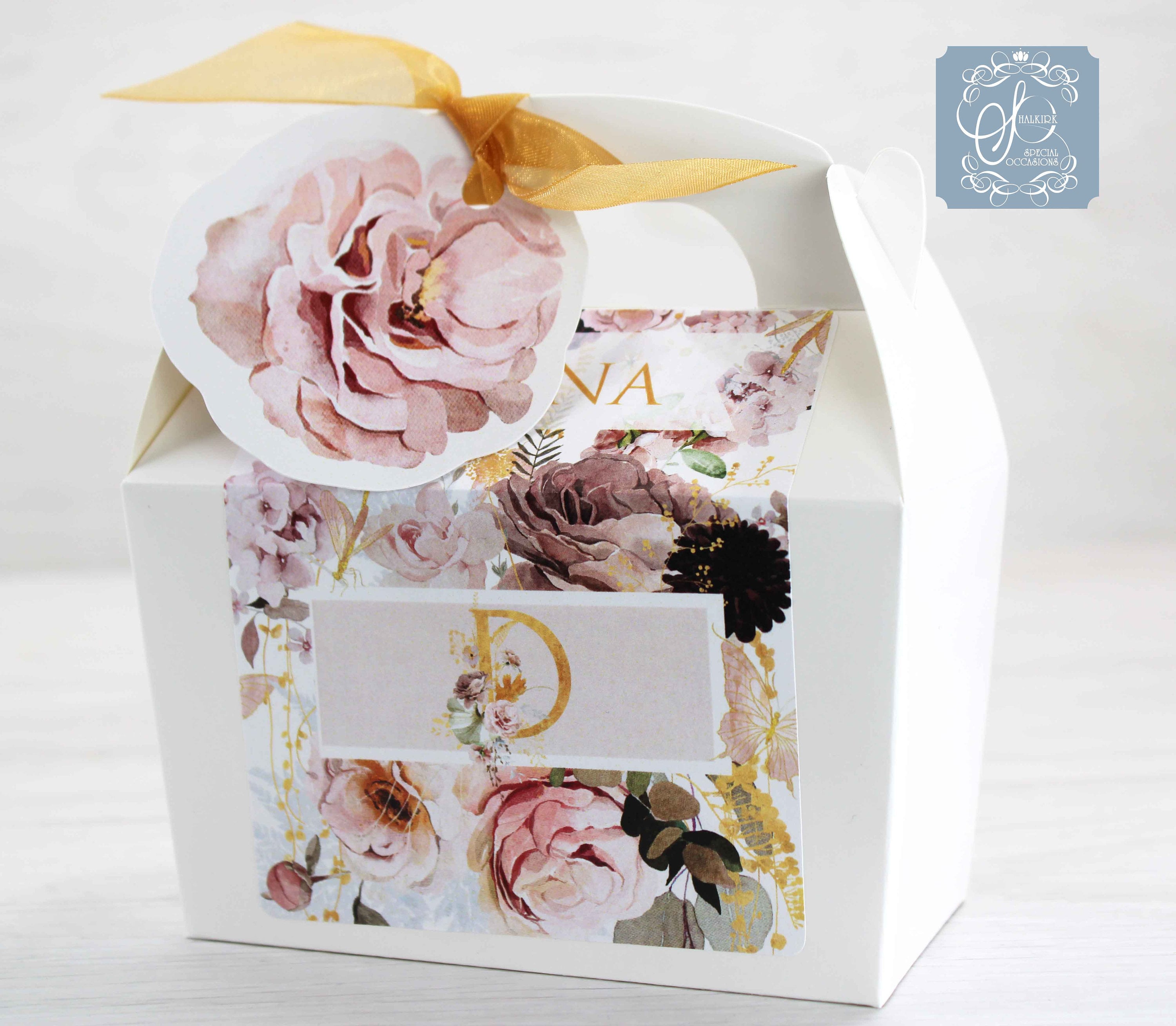 Personalised Wedding, Hen favour, Gable Party Activity Gift Cake, Lunch Boxes for Wedding, birthday, christening, Gold floral